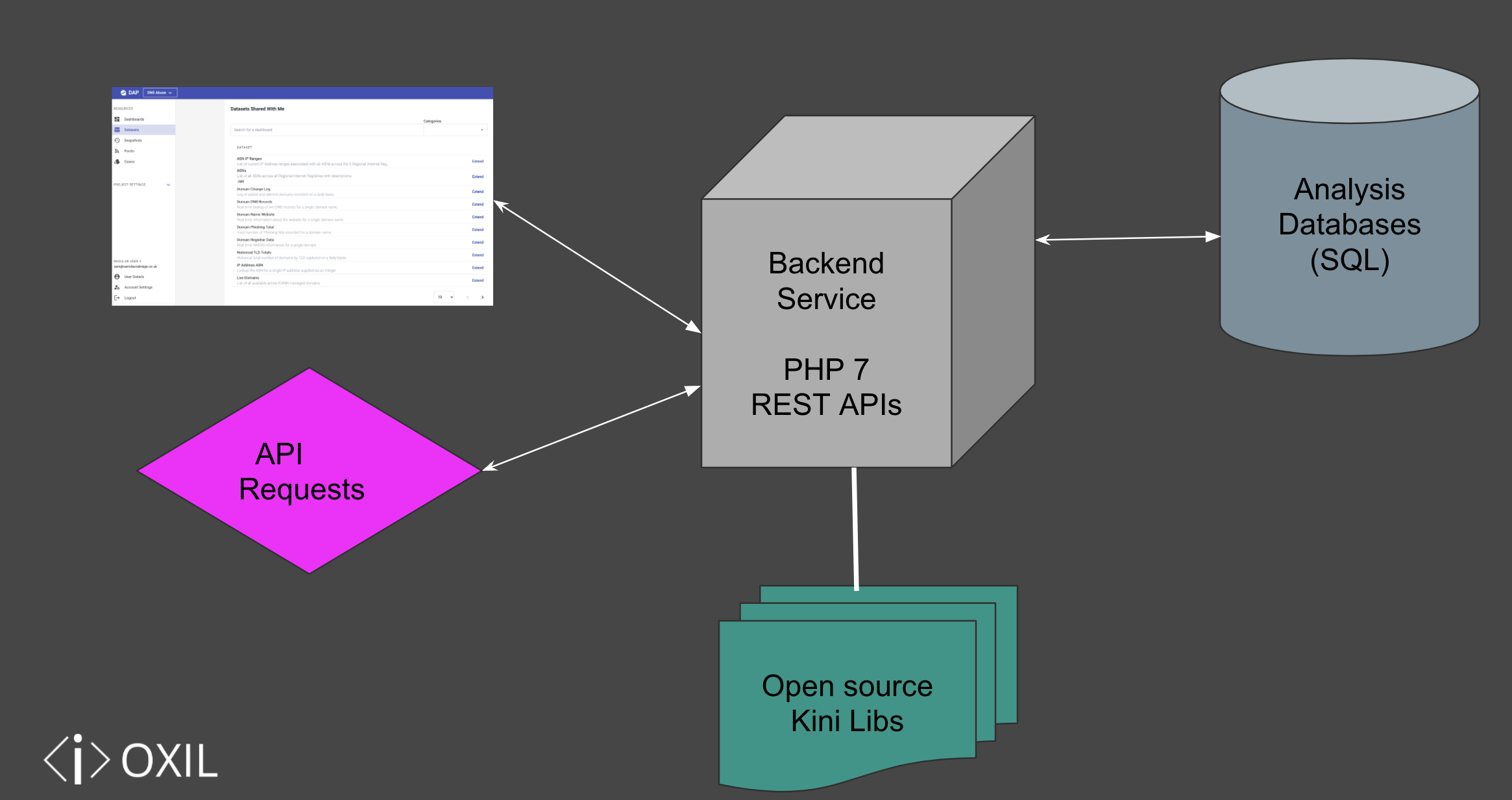 The backend service builds on a set of open source libraries (informally known as the "Kini" libraries) developed by Oxford Information Labs as a secure suite of object oriented application tools adhering to modern best practices with a high emphasis on security and extensibility. As well as being developed using a test driven agile methodology, these libraries have additionally been subjected to regular security and penetration testing to ensure that they meet the highest of security standards. The Kini libraries are mostly written in Object Oriented PHP 7 and the backend service for DAP.LIVE is deployed on standardised secure cloud infrastructures for performance and rapid scaling.