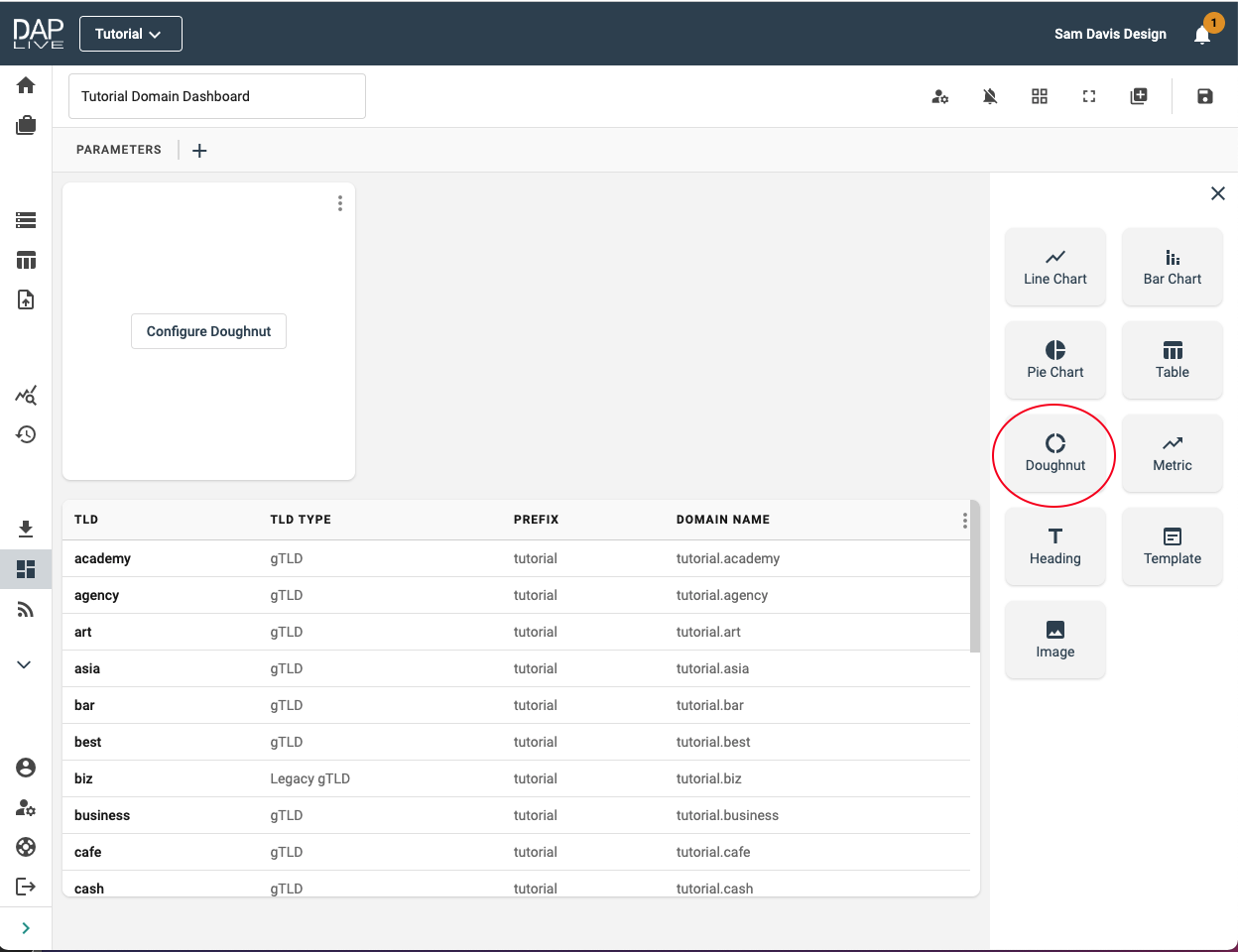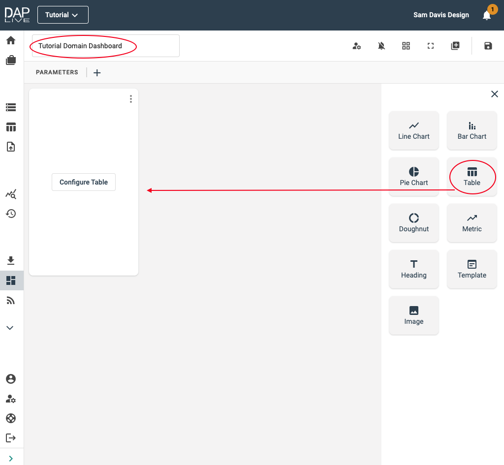 In this example, we are including a Table, Doughnut Chart and Bar Chart. Select which data you would like to create the table using. Then complete a title and head back to the dashboard where you will be able to see the table.