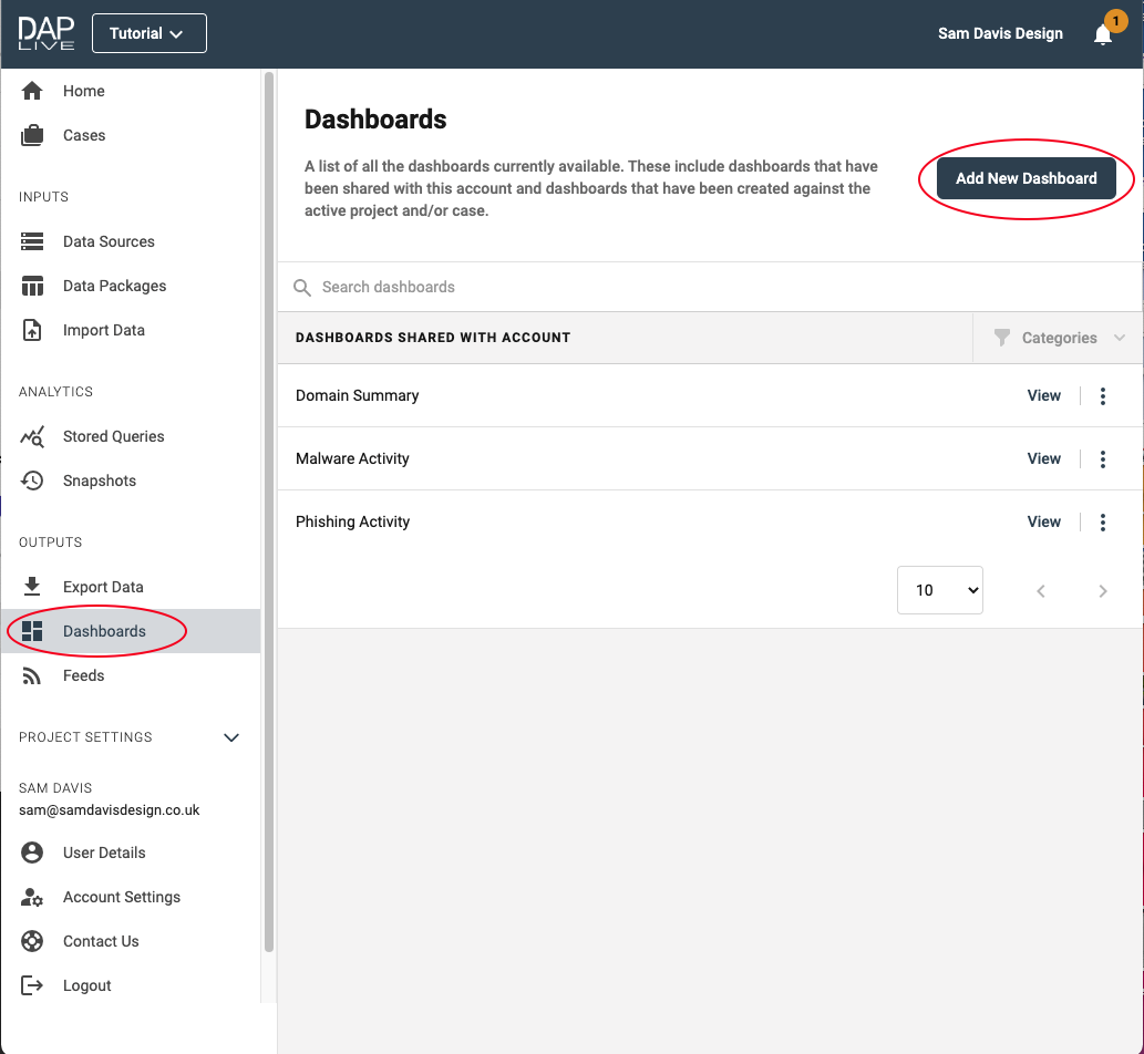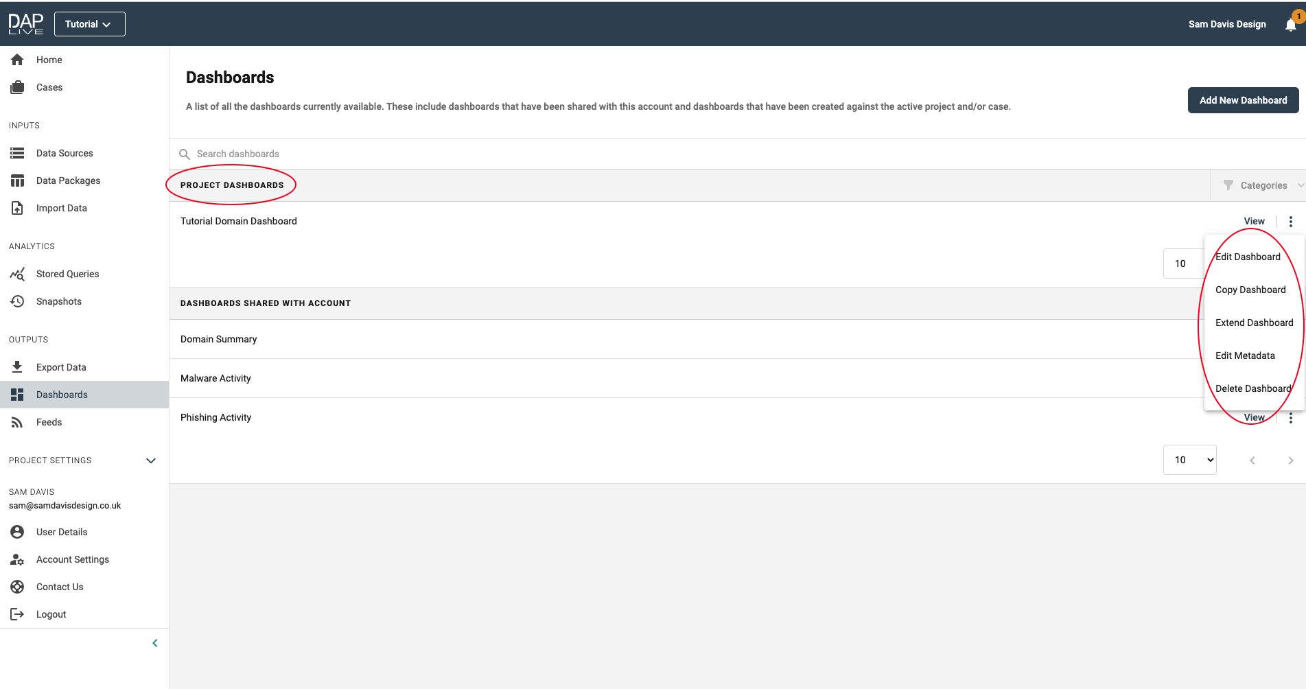 You can view all your project dashboards within your account at any time and they will update to give you the most up to date data within the DAP.LIVE system.