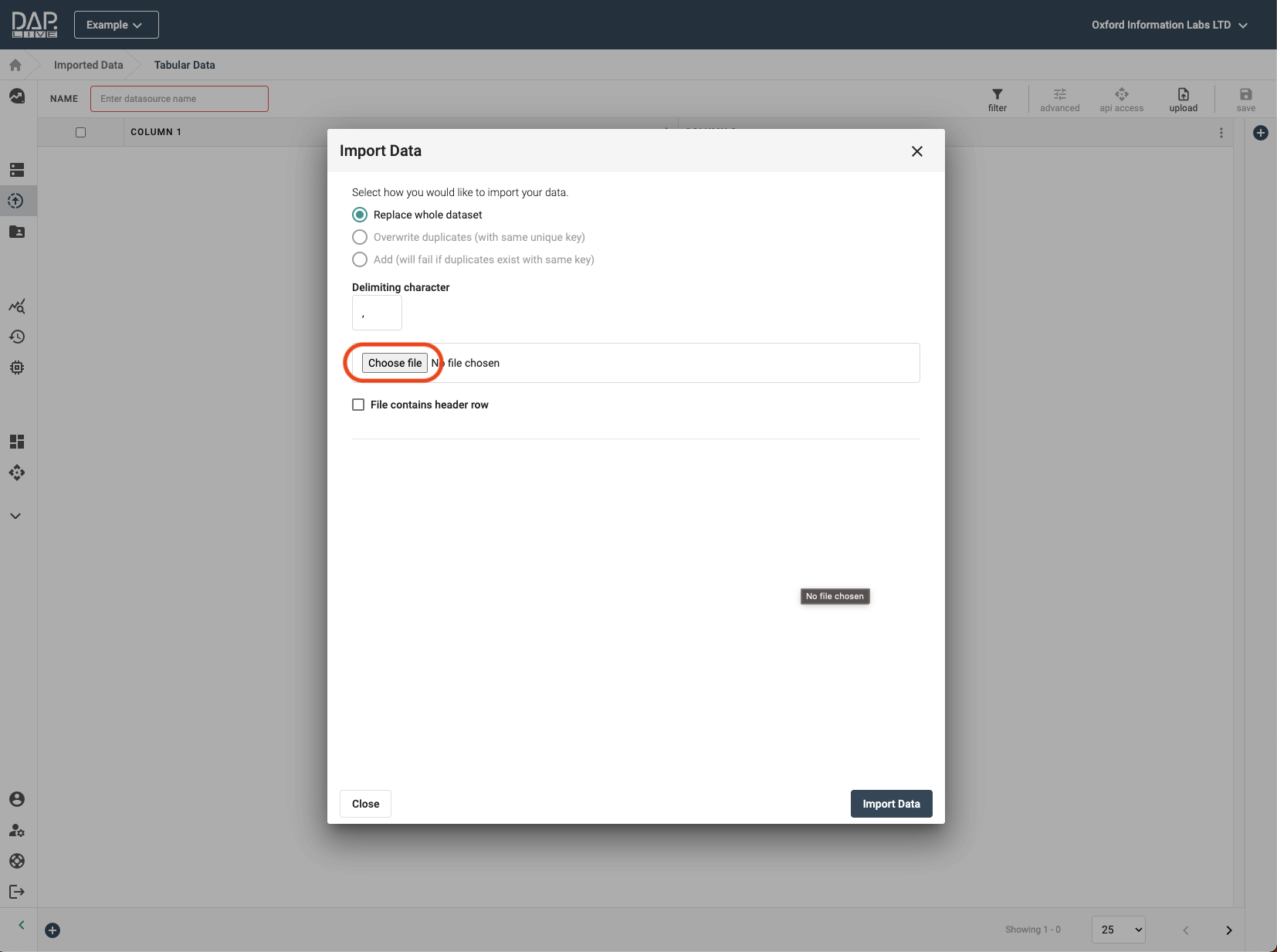 The DAP.LIVE allows you to import your own data into the system. In this tutorial, we will show you how to upload a CSV format file of your data into the DAP.LIVE.
