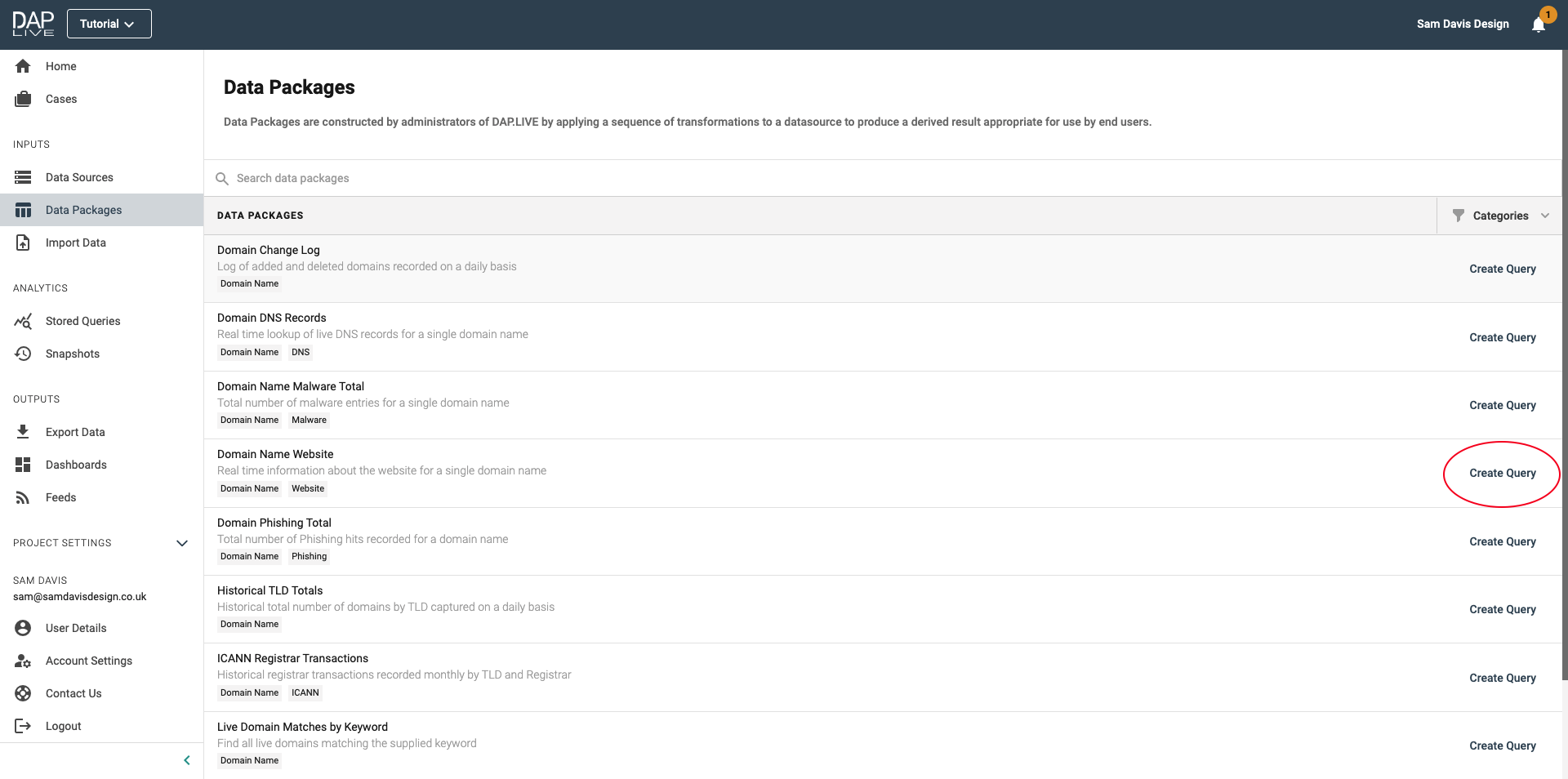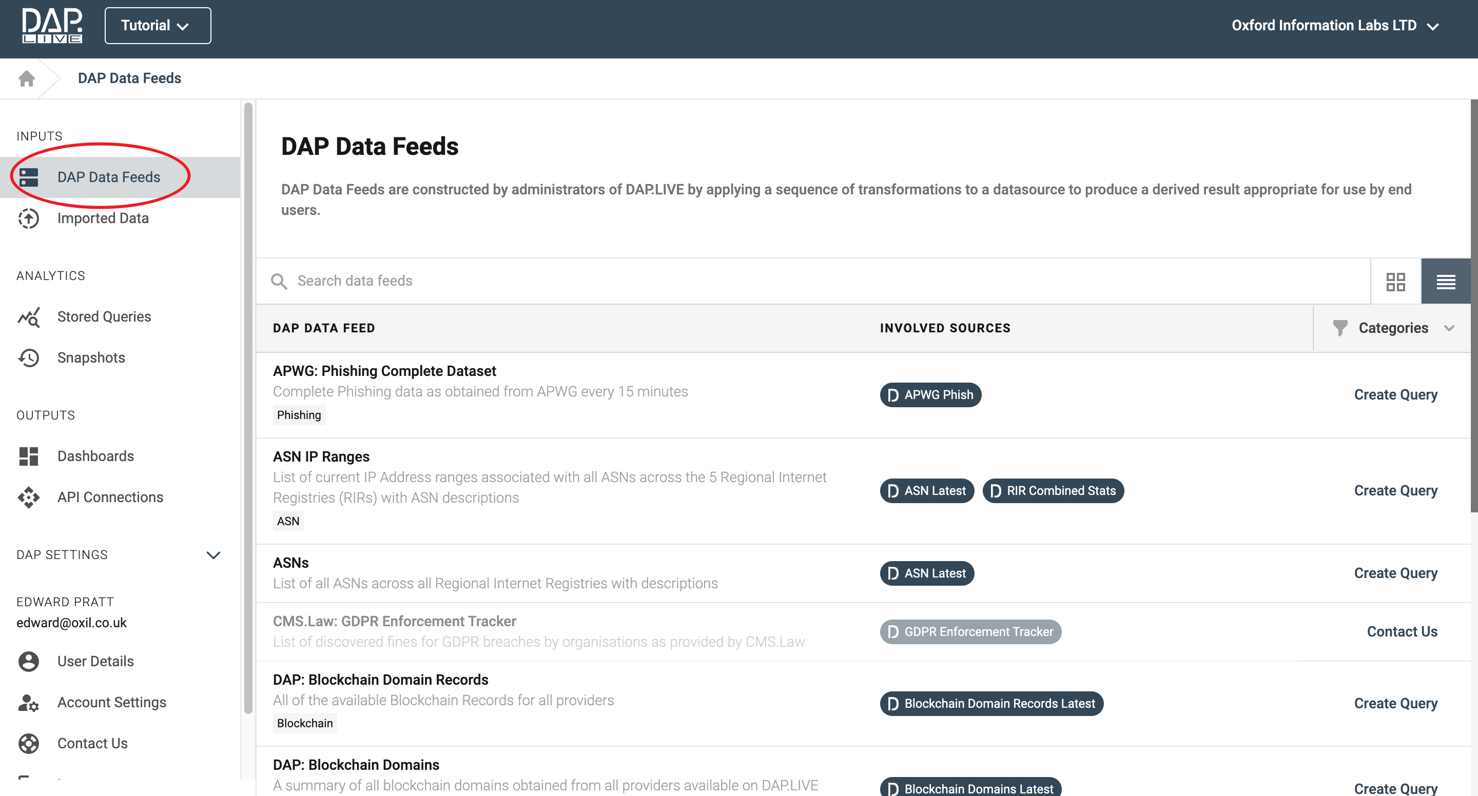 Once you have filtered down the collection of data feeds, select the feed that you would like to create a query of by clicking 'Create Query' on the right-hand side.