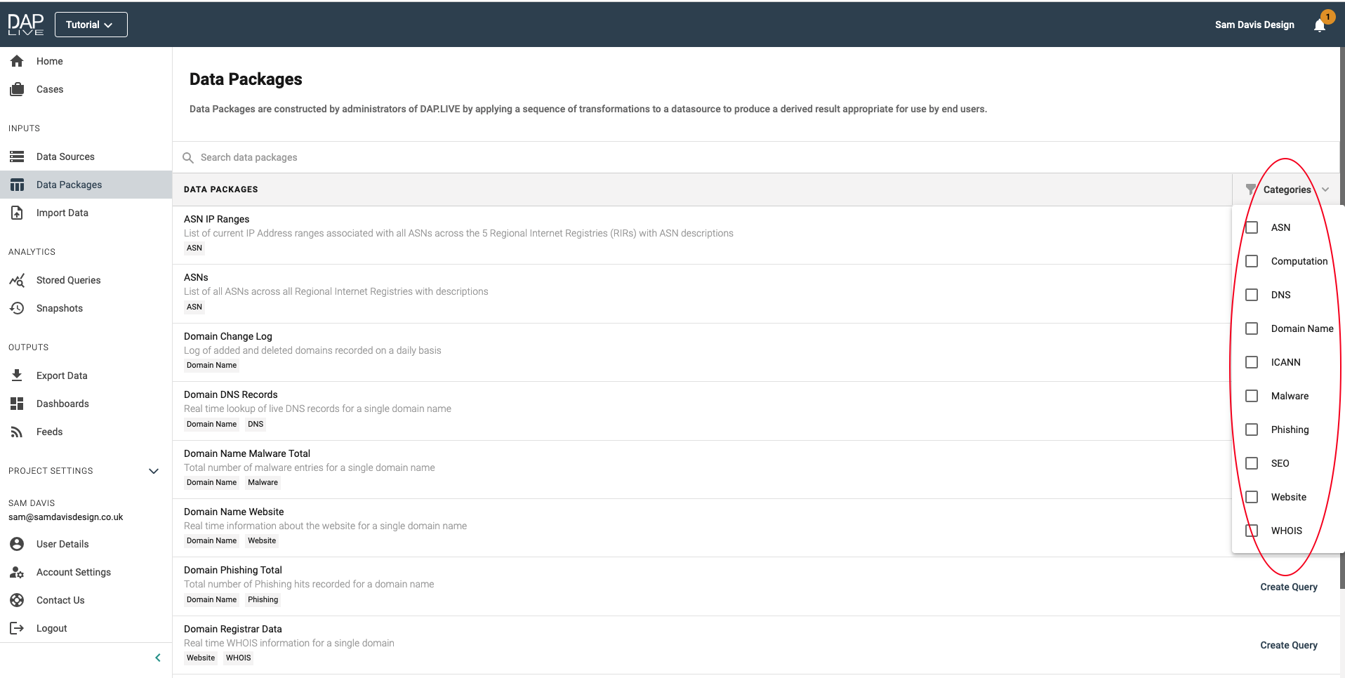 When searching for a data feed, you can filter the options down by selecting specific categories to reduce your view of the different data feeds, depending on what you are searching for.