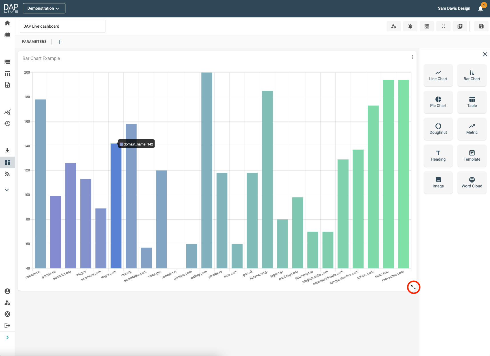 Now your Bar Chart will be displayed on the Dashboard where you are able to resize it as you wish. As you hover your mouse over each bar, the appropriate data will be displayed.