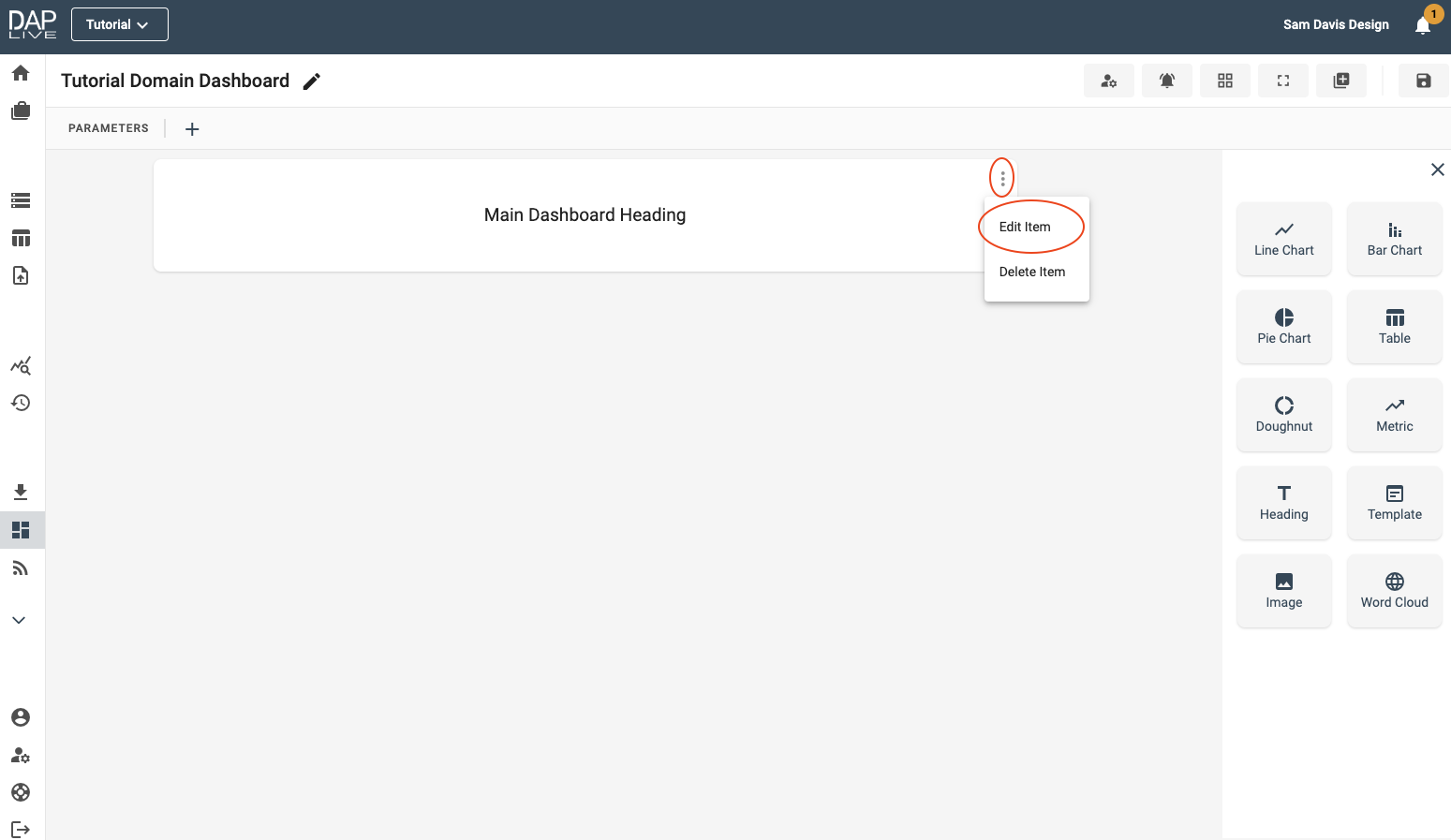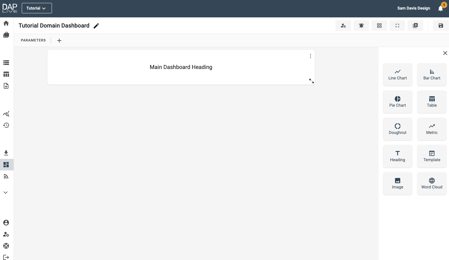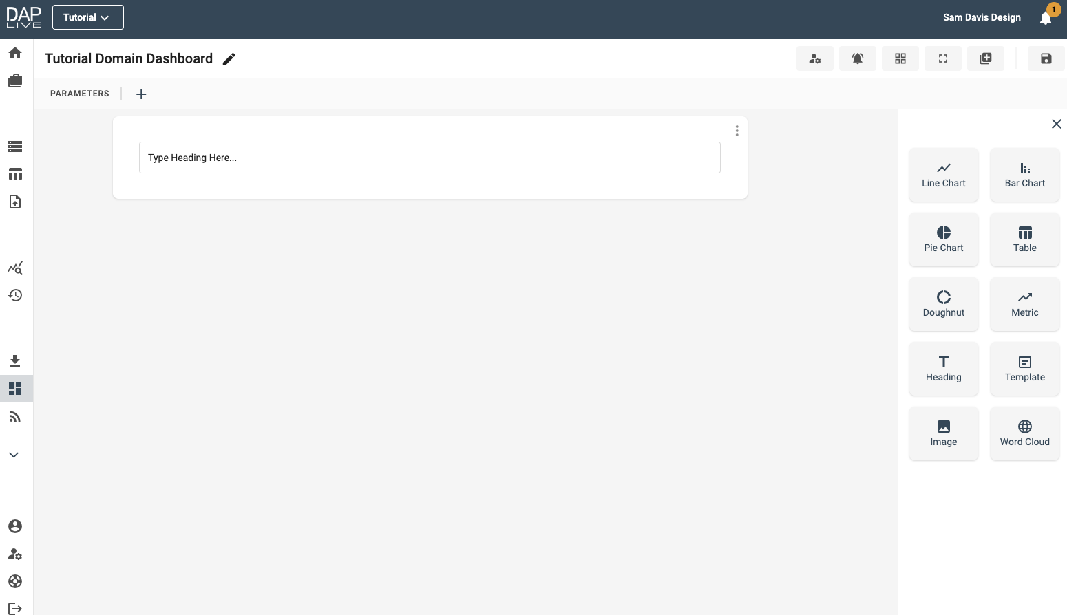 A text box will appear in the middle of the 'Heading' bar. Enter a suitable dashboard heading into the text box and then click elsewhere on the screen to set it as the Heading.