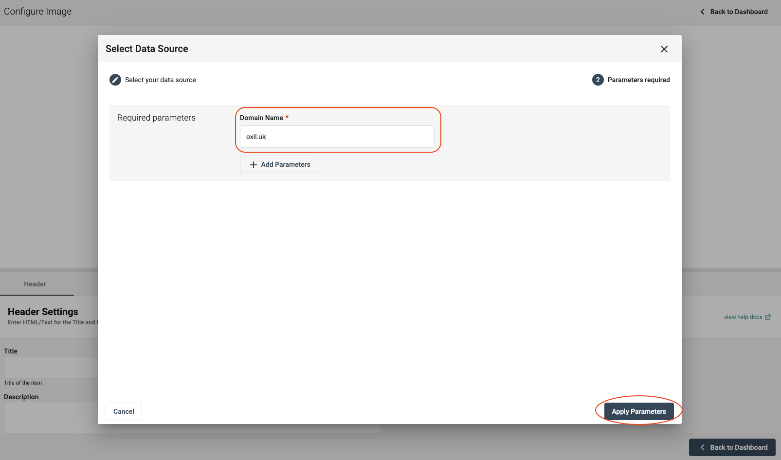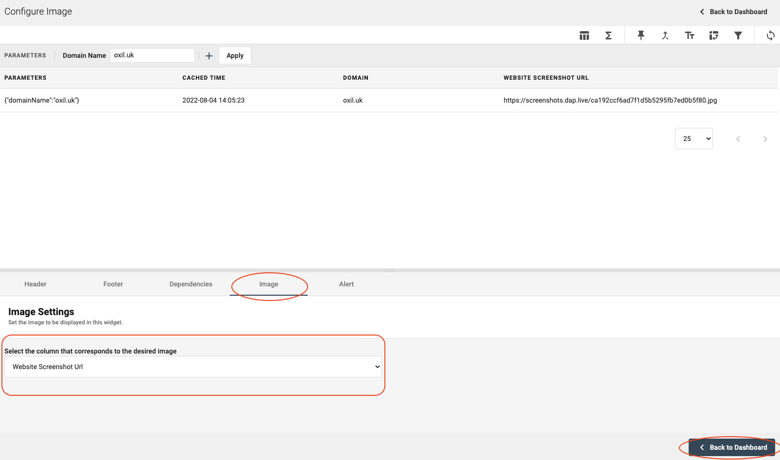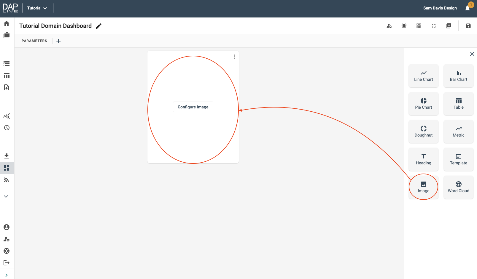 Give your dashboard a title and begin configuring by dragging and dropping the Image icon onto the screen. Then click 'Configure Image'.