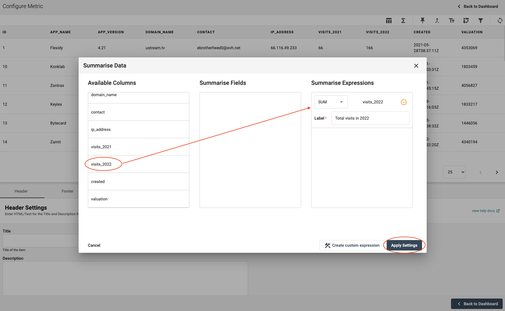 If your data is not already a single number, then you can still use the tools on the top right-hand side of the page. In this example, we have used the summarise tool to get the total number of app visits in 2022.