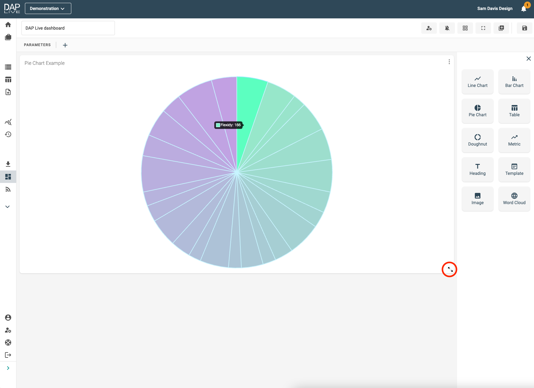 Now your Pie Chart will be displayed on the Dashboard where you are able to resize it as you wish. As you hover your mouse over each sector, the appropriate data will be displayed.