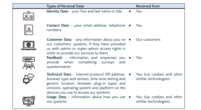 - Our supply chain: other organisations that help us provide our services. We ensure these organisations only have access to the information required to provide the support we use them for and have a contract with them that contains confidentiality and data protection obligations.